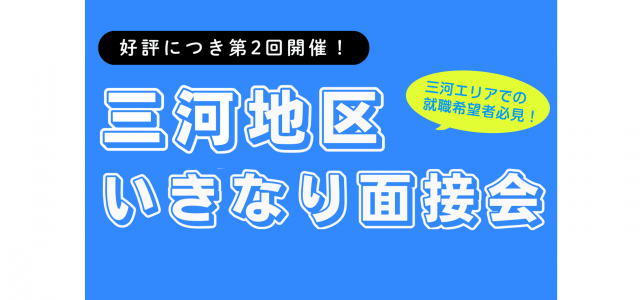 今回は三河地区での就職を希望する方に向けて、三河の優良中小企業7.8社が参加する面接イベントです。